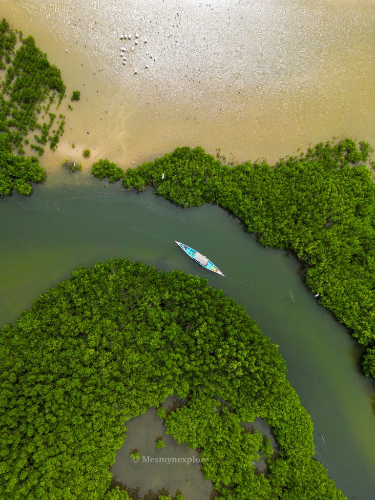 Journée plus tranquille, j’ai d’abord commencé par une balade en pirogue dans la lagune de la Somone. Quand j’y étais les drones étaient interdits, du moins il fallait payer pour obtenir une autorisation.