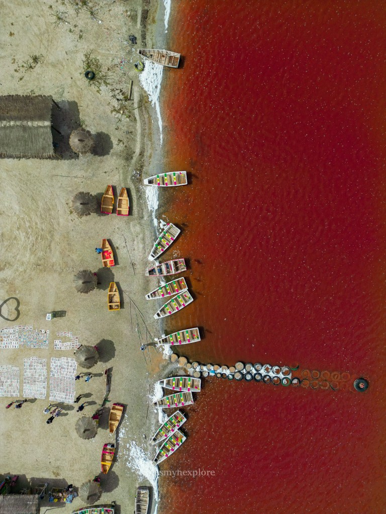 Sur le chemin pour rentrer à Dakar, j’ai eu l’envie de m’arrêter au Lac Rose, impatiente de découvrir ce magnifique pigment surprenant. Quelle chance j’ai eue ! Il était vraiment d’un rose éclatant. La visite était d’autant plus agréable qu’elle était gratuite, car je n’ai pas fait d’activités. À mon arrivée, un guide sympathique animait un petit groupe de touristes et il a eu la gentillesse de partager avec moi, gratuitement, l’histoire fascinante du lac.