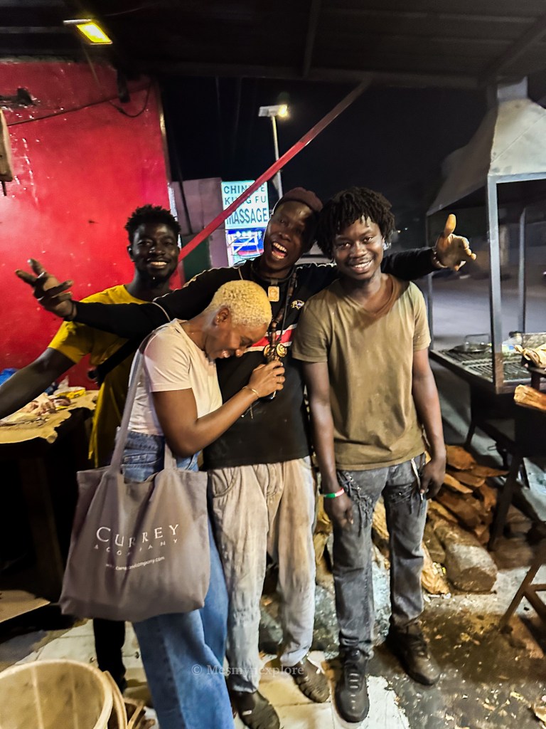 Dans l’après-midi, nous avons pris la route pour M’bour. À notre arrivée, nous avons marqué un arrêt à la Dibiterie Lamp Fall, où j’ai eu la chance de rencontrer Aliou, le propriétaire, et son équipe accueillante. Ce fut un moment mémorable, car ils étaient tellement sympathiques ! Ils m’ont même offert l’opportunité de jouer le rôle d’une « dibitière« . Pour couronner le tout, la viande était délicieuse.